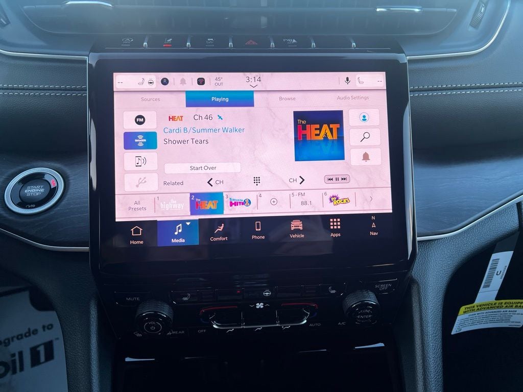 220 Amp Alternator, 4-Wheel Disc Brakes, 6 Speakers, ABS brakes, Active Noise Control System, Air Conditioning, Alloy wheels, AM/FM radio: SiriusXM with 360L, Anti-whiplash front head restraints, Audio memory, Auto High-beam Headlights, Automatic Headlamp Levelling System, Automatic temperature control, Brake assist, Bumpers: body-color, Capri Leatherette Seats, Class IV Receiver Hitch, Compass, Delay-off headlights, Driver door bin, Driver vanity mirror, Dual front impact airbags, Dual front side impact airbags, Electronic Stability Control, Emergency communication system, Four wheel independent suspension, Front anti-roll bar, Front Bucket Seats, Front Center Armrest w/Storage, Front dual zone A/C, Front fog lights, Front reading lights, Fully automatic headlights, Garage door transmitter, Heated door mirrors, Heated front seats, Heated rear seats, Heated steering wheel, Heavy-Duty Engine Cooling, Illuminated entry, Knee airbag, Low tire pressure warning, Memory seat, Model Year Tracking, Navigation System, Normal Duty Suspension, Occupant sensing airbag, Outside temperature display, Overhead airbag, Overhead console, Panic alarm, ParkView Rear Back-Up Camera, Passenger door bin, Passenger vanity mirror, Power door mirrors, Power driver seat, Power Liftgate, Power passenger seat, Power steering, Power windows, Quick Order Package 22E, Radio data system, Rear anti-roll bar, Rear Load Levelling Suspension, Rear reading lights, Rear window defroster, Rear window wiper, Remote keyless entry, Security system, Speed control, Speed-Sensitive Wipers, Split folding rear seat, Spoiler, Steering wheel mounted audio controls, Tachometer, Telescoping steering wheel, Tilt steering wheel, Traction control, Trailer Hitch Zoom, Trailer Tow Package, Trip computer, Turn signal indicator mirrors, Variably intermittent wipers, Voltmeter, Wheels: 18 x 8 Polished/Painted Aluminum.