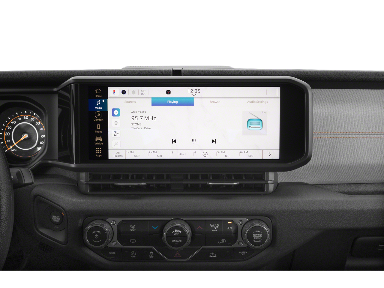 110 Mph Vehicle Max Speed Calibration, 12.3 Touchscreen Display, 2-Piece Body Color Fender Flares, 3.73 Rear Axle Ratio, 4-Wheel Disc Brakes, 4G LTE Wi-Fi Hot Spot, 8 Speakers, ABS brakes, Advanced Brake Assist, Air Conditioning, Air Conditioning with Auto Temp Control, Alexa Built-in, AM/FM radio: SiriusXM with 360L, Apple CarPlay, Apple CarPlay/Android Auto, Automatic Headlamps, Body Color 3-Piece Hard Top, Brake assist, Central ADAS Decision Module (CADM), Cluster 7.0 TFT Color Display, Compass, Connectivity - US/Canada, Corning Gorilla Glass, Daytime Running Lamp System, Daytime Running Lamps LED Accents, Deep Tint Sunscreen Windows, Delay-off headlights, Driver door bin, Driver vanity mirror, Dual front impact airbags, Dual front side impact airbags, Electronic Stability Control, Emergency/Assistance Call, For Details, Visit DriveUconnect.com, Freedom Panel Storage Bag, Front anti-roll bar, Front Bucket Seats, Front Center Armrest w/Storage, Front Door Locks 2-Door Passive Entry, Front fog lights, Front LED Fog Lamps, Front reading lights, Full Length Floor Console Premium Armrest, Full Speed Forward Collision Warning Plus, Google Android Auto, Hard Seat Back, Heated Front Seats, Heated Steering Wheel, Illuminated entry, Integrated Center Stack Radio, Integrated roll-over protection, Leather Wrapped Park Brake Handle, Leather Wrapped Shift Knob, LED Headlamp and Fog Lamp Group, LED Premium Reflector Headlamps, Low tire pressure warning, Manufacturer's Statement of Origin, MOPAR All-Weather Slush Mats, MyFlexCare Service Plan, Normal Duty Plus Suspension, Normal Duty Suspension, Occupant sensing airbag, Outside temperature display, Overhead airbag, Panic alarm, ParkView Rear Back-Up Camera, Passenger door bin, Passenger vanity mirror, Power 4-Way Driver Lumbar Adjust, Power 4-Way Passenger Lumbar Adjust, Power Adjust 8-Way Driver Seat, Power Adjust 8-Way Front Passenger Seat, Power Heated Mirrors, Power steering, Power windows, Premium Door Trim Panel, Premium McKinley Trimmed Seats, Premium Wrapped Steering Wheel, Quick Order Package 24H Sahara, Radio data system, Radio: Uconnect 5 with 12.3 Display, Rear anti-roll bar, Rear Armrest with Cupholder Seat, Rear reading lights, Rear Sliding Window, Rear Window Defroster, Remote keyless entry, Remote Start System, Sahara, Sahara Badge Neutral Gray, Security Alarm, SiriusXM Radio Service, SiriusXM with 360L, Speed control, Split folding rear seat, Steering wheel mounted audio controls, Sun Visors with Illuminated Vanity Mirrors, Tachometer, Telescoping steering wheel, Tilt steering wheel, Traction control, Trip computer, Universal Garage Door Opener, USB Host Flip, Variably intermittent wipers, Voltmeter, Wheels: 17 x 7.5 Black Steel Styled, Wheels: 18 x 7.5 Machined/Painted Gray.