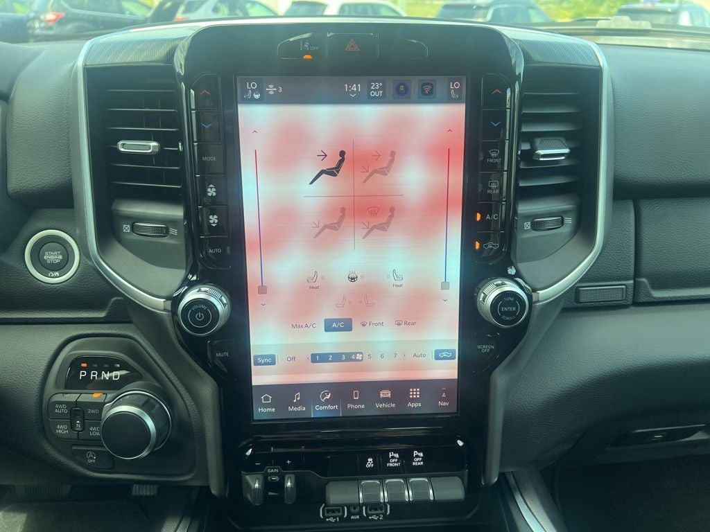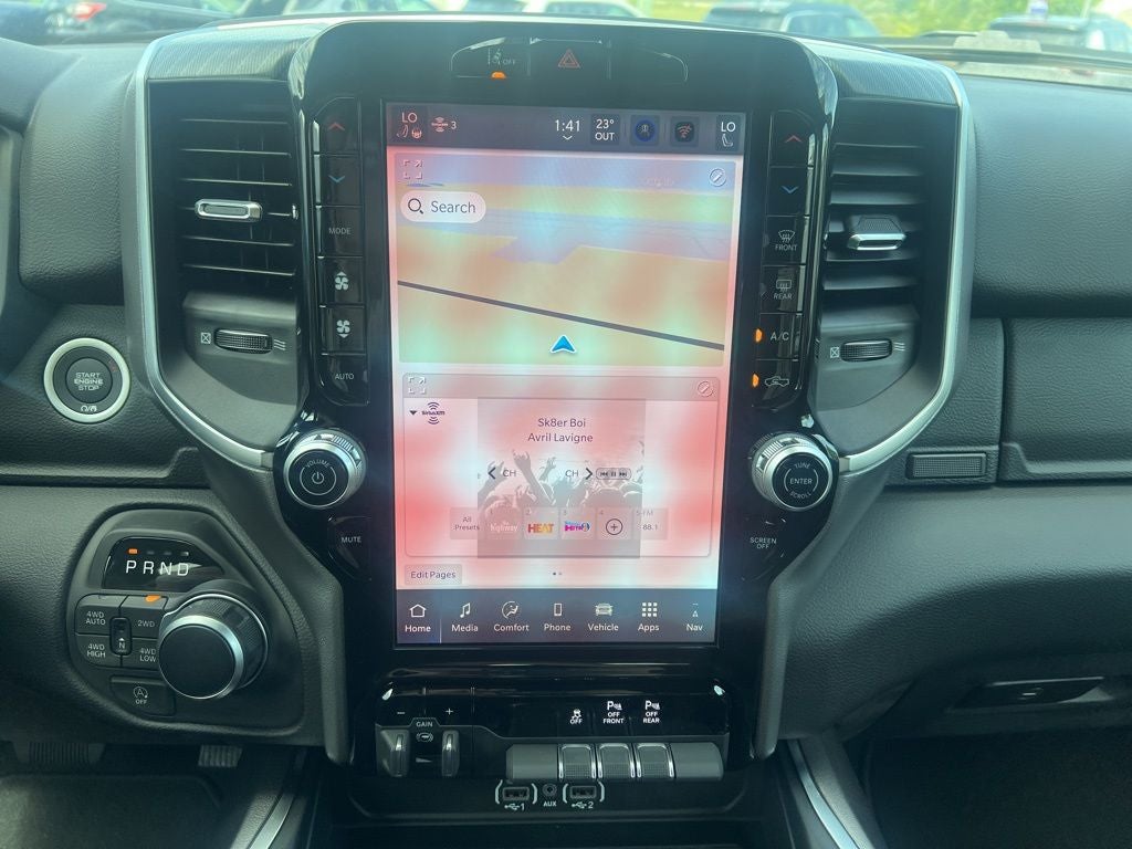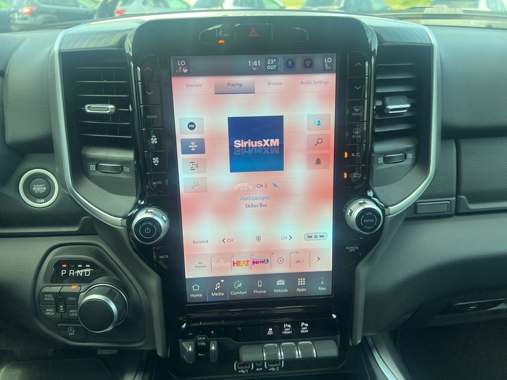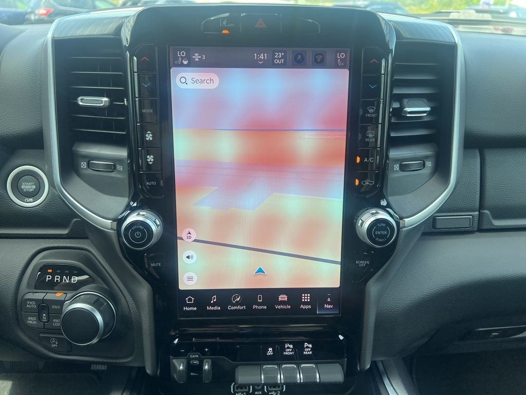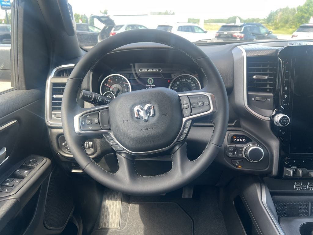 115V Auxiliary Power Outlet, 115V Auxiliary Rear Power Outlet, 12 Touchscreen Display, 3 Rear Seat Head Restraints, 4 Way Front Headrests, 4-Wheel Disc Brakes, 400W Inverter, 48V Belt Starter Generator, 4G LTE Wi-Fi Hot Spot, 6 Speakers, ABS brakes, Air Conditioning, Alloy wheels, AM/FM radio, Anti-Spin Differential Rear Axle, Apple CarPlay, Apple CarPlay/Android Auto, Auto High-beam Headlights, Auto Power-Folding Mirrors, Auto-Dimming Exterior Driver Mirror, Auto-Dimming Rear-View Mirror, Big Horn Level 2 Equipment Group, Black Exterior Mirrors, Black Interior Accents, Black Premium Power Mirrors, Body Color Door Handles, Body Color Fender Flares, Body Color Front Bumper, Body Color Tailgate Handle, Brake assist, Bucket Seats, Bumpers: chrome, Center Console Parts Module, Cloth Bucket Seats, Cluster 7.0 TFT Color Display, Compass, Configurable Drive Mode, Connectivity - US/Canada, Convex Wide-Angle Exterior Mirror Insert, Delay-off headlights, Deluxe Cloth Bucket Seats, Disassociated Touchscreen Display, Driver door bin, Dual front impact airbags, Dual front side impact airbags, Electronic Stability Control, Exterior Mirrors Courtesy Lamps, Front anti-roll bar, Front Bucket Seats, Front Center Armrest w/Storage, Front fog lights, Front reading lights, Front Seat Back Map Pockets, Front wheel independent suspension, Full Length Floor Console, Fully automatic headlights, Glove Box Lamp, Google Android Auto, GPS Antenna Input, GPS Navigation, Grille Surround 1 Body Color Texture 1 Black, HD Radio, Heated door mirrors, Heated Front Seats, Heated Steering Wheel, Illuminated entry, Integrated Center Stack Radio, Leather Wrapped Steering Wheel, LED Footwell Lighting, Low tire pressure warning, Manual Adjust 4-Way Driver Seat, Manual Adjust 4-Way Front Passenger Seat, Manual Folding Exterior Mirrors, Manufacturer's Statement of Origin, Occupant sensing airbag, Outside temperature display, Overhead airbag, Overhead console, Overhead LED Lamps, Panic alarm, ParkView Rear Back-Up Camera, Passenger door bin, Passenger vanity mirror, Power 2-Way Driver Lumbar Adjust, Power Adjust 8-Way Driver Seat, Power Adjustable Pedals, Power door mirrors, Power steering, Power windows, Premium Overhead Console, Quick Order Package 21Z Big Horn, Radio data system, RAM Grille Badge - Chrome, Rear 60/40 Folding Seat, Rear anti-roll bar, Rear Center Armrest, Rear Power Sliding Window, Rear step bumper, Rear Wheelhouse Liners, Rear Window Defroster, Remote keyless entry, Remote Tailgate Release, Security Alarm, SiriusXM Radio Service, Speed control, Sport Appearance Package, Steering Wheel Mounted Audio Controls, Supplier Part Tracking (J-1), Tachometer, Telescoping steering wheel, Tilt steering wheel, Traction control, Trailer Brake Control, Trip computer, Universal Garage Door Opener, USB Host Flip, Variably intermittent wipers, Voltmeter, Wheels: 18 x 8 Cast-Aluminum Painted.