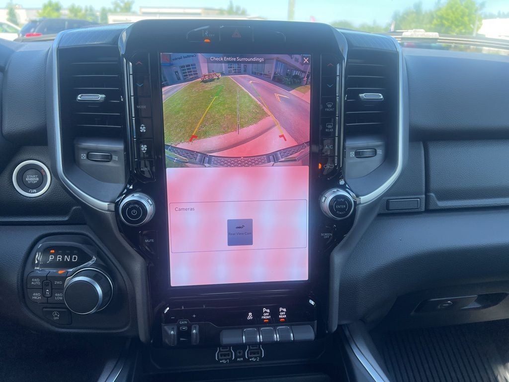 115V Auxiliary Power Outlet, 115V Auxiliary Rear Power Outlet, 12 Touchscreen Display, 3 Rear Seat Head Restraints, 4 Way Front Headrests, 4-Wheel Disc Brakes, 400W Inverter, 48V Belt Starter Generator, 4G LTE Wi-Fi Hot Spot, 6 Speakers, ABS brakes, Air Conditioning, Alloy wheels, AM/FM radio, Anti-Spin Differential Rear Axle, Apple CarPlay, Apple CarPlay/Android Auto, Auto High-beam Headlights, Auto Power-Folding Mirrors, Auto-Dimming Exterior Driver Mirror, Auto-Dimming Rear-View Mirror, Big Horn Level 2 Equipment Group, Black Exterior Mirrors, Black Interior Accents, Black Premium Power Mirrors, Body Color Door Handles, Body Color Fender Flares, Body Color Front Bumper, Body Color Tailgate Handle, Brake assist, Bucket Seats, Bumpers: chrome, Center Console Parts Module, Cloth Bucket Seats, Cluster 7.0 TFT Color Display, Compass, Configurable Drive Mode, Connectivity - US/Canada, Convex Wide-Angle Exterior Mirror Insert, Delay-off headlights, Deluxe Cloth Bucket Seats, Disassociated Touchscreen Display, Driver door bin, Dual front impact airbags, Dual front side impact airbags, Electronic Stability Control, Exterior Mirrors Courtesy Lamps, Front anti-roll bar, Front Bucket Seats, Front Center Armrest w/Storage, Front fog lights, Front reading lights, Front Seat Back Map Pockets, Front wheel independent suspension, Full Length Floor Console, Fully automatic headlights, Glove Box Lamp, Google Android Auto, GPS Antenna Input, GPS Navigation, Grille Surround 1 Body Color Texture 1 Black, HD Radio, Heated door mirrors, Heated Front Seats, Heated Steering Wheel, Illuminated entry, Integrated Center Stack Radio, Leather Wrapped Steering Wheel, LED Footwell Lighting, Low tire pressure warning, Manual Adjust 4-Way Driver Seat, Manual Adjust 4-Way Front Passenger Seat, Manual Folding Exterior Mirrors, Manufacturer's Statement of Origin, Occupant sensing airbag, Outside temperature display, Overhead airbag, Overhead console, Overhead LED Lamps, Panic alarm, ParkView Rear Back-Up Camera, Passenger door bin, Passenger vanity mirror, Power 2-Way Driver Lumbar Adjust, Power Adjust 8-Way Driver Seat, Power Adjustable Pedals, Power door mirrors, Power steering, Power windows, Premium Overhead Console, Quick Order Package 21Z Big Horn, Radio data system, RAM Grille Badge - Chrome, Rear 60/40 Folding Seat, Rear anti-roll bar, Rear Center Armrest, Rear Power Sliding Window, Rear step bumper, Rear Window Defroster, Remote keyless entry, Remote Tailgate Release, Security Alarm, SiriusXM Radio Service, Speed control, Sport Appearance Package, Steering Wheel Mounted Audio Controls, Supplier Part Tracking (J-1), Tachometer, Telescoping steering wheel, Tilt steering wheel, Traction control, Trailer Brake Control, Trip computer, Universal Garage Door Opener, USB Host Flip, Variably intermittent wipers, Voltmeter, Wheels: 18 x 8 Cast-Aluminum Painted.