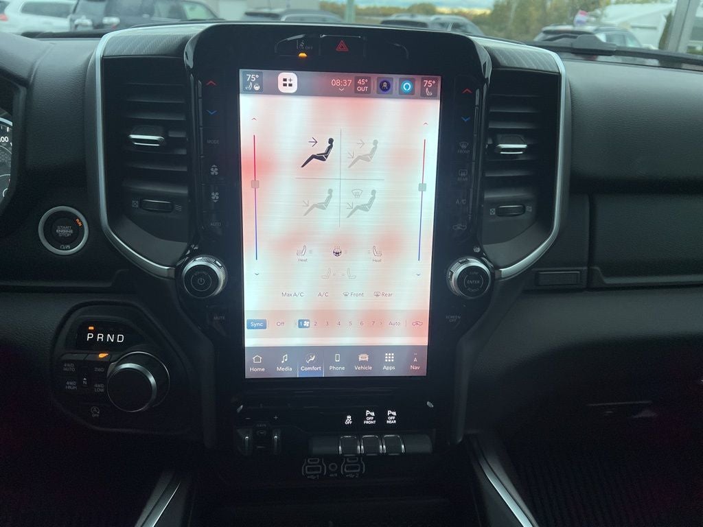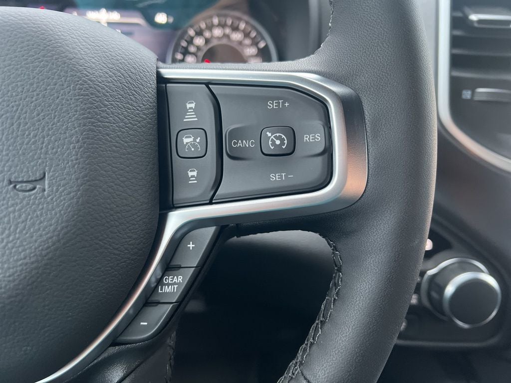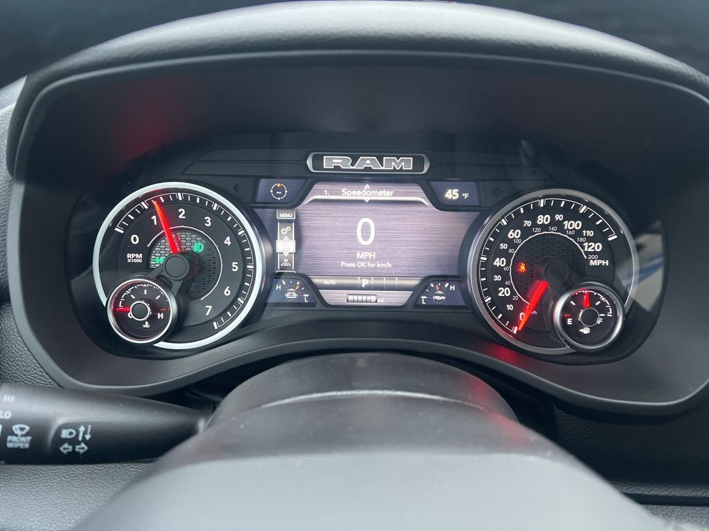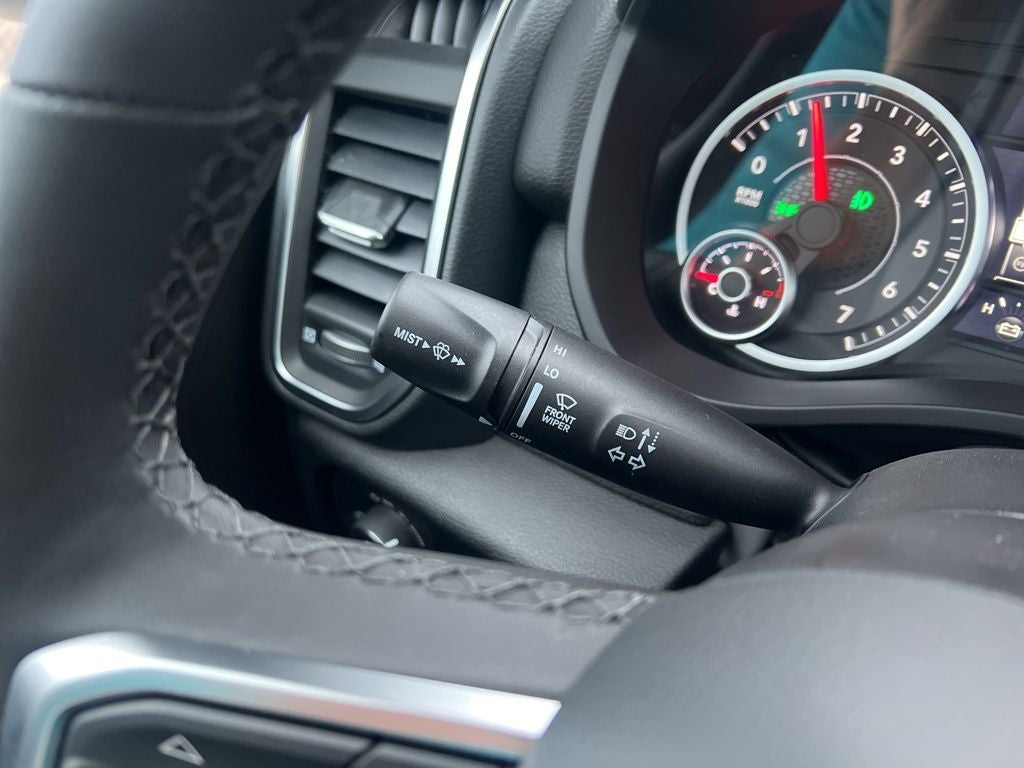 115V Auxiliary Power Outlet, 115V Auxiliary Rear Power Outlet, 12 Touchscreen Display, 3 Rear Seat Head Restraints, 33 Gallon Fuel Tank, 4 Way Front Headrests, 4-Wheel Disc Brakes, 400W Inverter, 48V Belt Starter Generator, 4G LTE Wi-Fi Hot Spot, 6 Speakers, ABS brakes, Air Conditioning, Alloy wheels, AM/FM radio, Anti-Spin Differential Rear Axle, Apple CarPlay, Apple CarPlay/Android Auto, Auto High-beam Headlights, Auto Power-Folding Mirrors, Auto-Dimming Exterior Driver Mirror, Auto-Dimming Rear-View Mirror, Big Horn Level 2 Equipment Group, Black Exterior Mirrors, Black Interior Accents, Black Premium Power Mirrors, Body Color Door Handles, Body Color Fender Flares, Body Color Front Bumper, Body Color Tailgate Handle, Brake assist, Bucket Seats, Bumpers: chrome, Center Console Parts Module, Cloth Bucket Seats, Cluster 7.0 TFT Color Display, Compass, Configurable Drive Mode, Connectivity - US/Canada, Convex Wide-Angle Exterior Mirror Insert, Delay-off headlights, Deluxe Cloth Bucket Seats, Disassociated Touchscreen Display, Driver door bin, Dual front impact airbags, Dual front side impact airbags, Electronic Stability Control, Exterior Mirrors Courtesy Lamps, Front anti-roll bar, Front Bucket Seats, Front Center Armrest w/Storage, Front fog lights, Front reading lights, Front Seat Back Map Pockets, Front wheel independent suspension, Full Length Floor Console, Fully automatic headlights, Glove Box Lamp, Google Android Auto, GPS Antenna Input, GPS Navigation, Grille Surround 1 Body Color Texture 1 Black, HD Radio, Heated door mirrors, Heated Front Seats, Heated Steering Wheel, Illuminated entry, Integrated Center Stack Radio, Leather Wrapped Steering Wheel, LED Footwell Lighting, Low tire pressure warning, Manual Adjust 4-Way Driver Seat, Manual Adjust 4-Way Front Passenger Seat, Manual Folding Exterior Mirrors, Manufacturer's Statement of Origin, Occupant sensing airbag, Outside temperature display, Overhead airbag, Overhead console, Overhead LED Lamps, Panic alarm, ParkView Rear Back-Up Camera, Passenger door bin, Passenger vanity mirror, Power 2-Way Driver Lumbar Adjust, Power Adjust 8-Way Driver Seat, Power Adjustable Pedals, Power door mirrors, Power steering, Power windows, Premium Overhead Console, Quick Order Package 27Z Big Horn, Radio data system, RAM Grille Badge - Chrome, Rear 60/40 Folding Seat, Rear anti-roll bar, Rear Center Armrest, Rear Power Sliding Window, Rear step bumper, Rear Window Defroster, Remote keyless entry, Remote Tailgate Release, Security Alarm, SiriusXM Radio Service, Speed control, Sport Appearance Package, Steering Wheel Mounted Audio Controls, Supplier Part Tracking (J-1), Tachometer, Telescoping steering wheel, Tilt steering wheel, Traction control, Trailer Brake Control, Trip computer, Universal Garage Door Opener, USB Host Flip, Variably intermittent wipers, Voltmeter, Wheels: 18 x 8 Cast-Aluminum Painted, Wheels: 20 x 9 Aluminum Chrome Clad.
