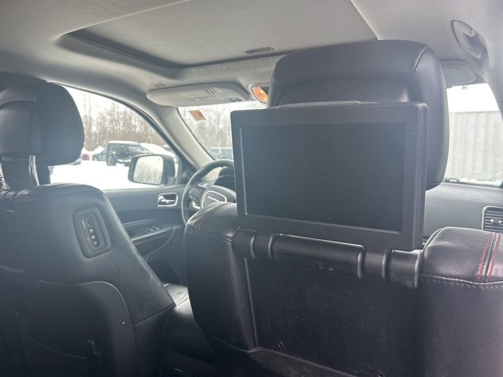 Bluetooth®/Cell Phone, Back Up Camera, Moonroof, Heated Seats, 3rd Row Seats, Leather, 7 Passenger, 4X4, Fully Automatic Headlights, Remote Keyless Entry, Power Liftgate, Heated Steering Wheel, Durango GT, 4D Sport Utility, 3.6L V6 24V VVT, 8-Speed Automatic, AWD, DB Black Crystal Clearcoat, Black Leather, Memory seat, Power driver seat, Power Liftgate, Power Sunroof, Quick Order Package 2BE, Remote keyless entry, Steering wheel mounted audio controls, 3.45 Rear Axle Ratio, 3rd row seats: split-bench, 4-Wheel Disc Brakes, 6 Speakers, ABS brakes, Air Conditioning, Alloy wheels, AM/FM radio: SiriusXM, Anti-whiplash front head restraints, Apple CarPlay, Apple CarPlay/Android Auto, Audio memory, Auto-dimming door mirrors, Auto-dimming Rear-View mirror, Automatic temperature control, Blu-Ray Compatible Dual Screen Video, Brake assist, Bumpers: body-color, Compass, Delay-off headlights, Driver door bin, Driver vanity mirror, Dual front impact airbags, Dual front side impact airbags, Electronic Stability Control, Emergency communication system: Roadside Assistance/9-1-1 Call, Four wheel independent suspension, Front anti-roll bar, Front Bucket Seats, Front Center Armrest w/Storage, Front dual zone A/C, Front fog lights, Front reading lights, Fully automatic headlights, Garage door transmitter, Google Android Auto, Heated door mirrors, Heated front seats, Heated rear seats, Heated steering wheel, Illuminated entry, Knee airbag, Leather Suede Bucket Seats, Low tire pressure warning, Occupant sensing airbag, Outside temperature display, Overhead airbag, Overhead console, Panic alarm, ParkView Rear Back-Up Camera, Passenger door bin, Passenger vanity mirror, Power 8-Way Driver Memory 8-Way Passenger Seats, Power door mirrors, Power passenger seat, Power steering, Power windows, Radio: Uconnect 4 w/7 Display, Rear air conditioning, Rear anti-roll bar, Rear DVD Entertainment Center, Rear reading lights, Rear seat center armrest, Rear window defroster, Rear window wiper, Rear-Seat Video System, Security system, Speed control, Speed-Sensitive Wipers, Split folding rear seat, Spoiler, Tachometer, Telescoping steering wheel, Tilt steering wheel, Traction control, Trip computer, Turn signal indicator mirrors, Variably intermittent wipers, Wheels: 20 x 8.0 Premium Painted Aluminum, Durango GT, 4D Sport Utility, 3.6L V6 24V VVT, 8-Speed Automatic, AWD, DB Black Crystal Clearcoat, Black Leather, Memory seat, Power driver seat, Power Liftgate, Power Sunroof, Quick Order Package 2BE, Remote keyless entry, Steering wheel mounted audio controls.