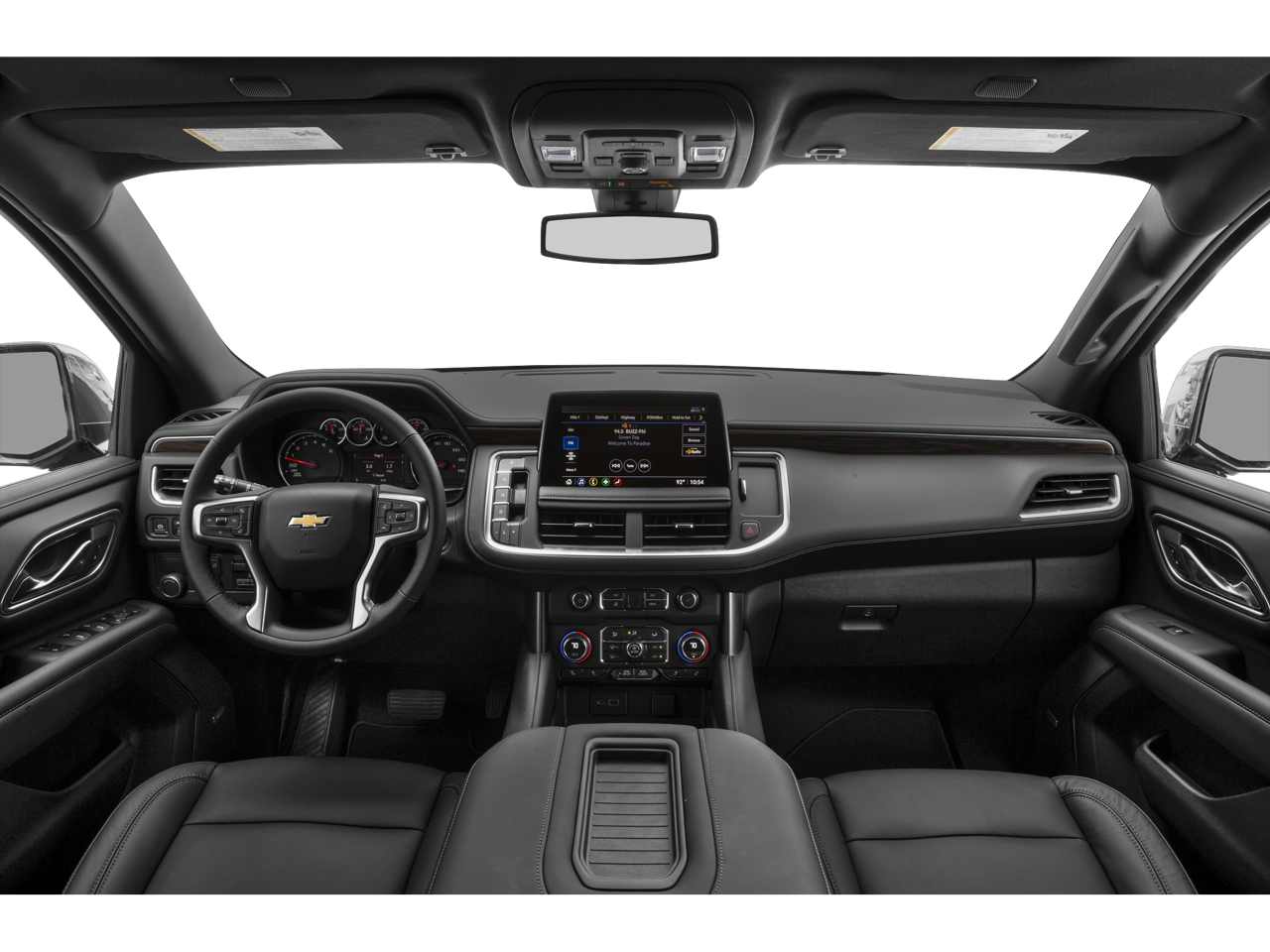 10-Way Power Driver & Passenger Seat Adjusters, 1st & 2nd Row Color-Keyed Carpeted Floor Mats, 1st, 2nd & 3rd Rows All-Weather Floor Liners (LPO), 2-Speed Active Electronic AutoTrac Transfer Case, 2nd Row Pwr Release 60/40 Split-Folding Bench Seat, 3.23 Rear Axle Ratio, 3rd Row 60/40 Power-Folding Split-Bench Seat, 3rd row seats: split-bench, 4-Wheel Disc Brakes, 9 Speakers, ABS brakes, Advanced Trailering Package, Air Conditioning, Alloy wheels, AM/FM radio: SiriusXM with 360L, Apple CarPlay/Android Auto, Auto High-beam Headlights, Auto-Dimming Inside Rear-View Mirror, Auto-dimming Rear-View mirror, Automatic temperature control, Black Name Plates (LPO), Bose 9-Speaker Stereo Audio System Feature, Brake assist, Bright Front & Rear Door Sill Plates, Bumpers: body-color, Color-Keyed Carpeting Floor Covering, Compass, Delay-off headlights, Driver & Front Outboard Passenger Airbags, Driver Alert Package, Driver door bin, Driver vanity mirror, Dual front impact airbags, Dual front side impact airbags, Dual-Pane Power Panoramic Sunroof, Electronic Stability Control, Emergency communication system: OnStar and Chevrolet connected services capable, Enhanced Driver Information Center, Extra Capacity Cooling System, Floor Console w/Storage Area, Four wheel independent suspension, Front & Rear Black Bowtie Emblems (LPO), Front anti-roll bar, Front Bucket Seats, Front Center Armrest, Front dual zone A/C, Front High-Back Reclining Bucket Seats, Front reading lights, Fully automatic headlights, Garage door transmitter, Hands-Free Rear Power Programmable Liftgate, HD Surround Vision, Heated 2nd Row Outboard Seats, Heated door mirrors, Heated Driver & Front Passenger Seats, Heated front seats, Heated Steering Wheel, Hitch Guidance w/Hitch View, Illuminated entry, Infotainment Display, Integrated Trailer Brake Controller, Lane Change Alert w/Side Blind Zone Alert, Leather-Appointed Seat Trim, LED Daytime Running Lamps, Low tire pressure warning, LT Signature Package, Luxury Package, Max Trailering Package, Memory seat, Memory Settings, Memory Settings for Driver, Navigation System, Occupant sensing airbag, Outside Heated Power-Adjustable Mirrors, Outside temperature display, Overhead airbag, Overhead console, Panic alarm, Passenger door bin, Passenger vanity mirror, Power door mirrors, Power driver seat, Power Liftgate, Power passenger seat, Power Release 2nd Row Bucket Seats, Power steering, Power Tilt & Telescopic Steering Column, Power windows, Preferred Equipment Group 1LT, Premium audio system: Chevrolet Infotainment 3 Premium, Premium Smooth Ride Suspension, Radio: Chevrolet Infotainment 3 Premium System, Rain sensing wipers, Rear air conditioning, Rear anti-roll bar, Rear Cross Traffic Alert, Rear Pedestrian Alert, Rear reading lights, Rear seat center armrest, Rear window defroster, Rear window wiper, Remote keyless entry, Remote Start, Roof rack: rails only, Security system, SiriusXM Radio w/360L, Smart Trailer Integration Indicator, Speed control, Speed-sensing steering, Split folding rear seat, Spoiler, Steering wheel mounted audio controls, Tachometer, Telescoping steering wheel, Tilt steering wheel, Traction control, Trip computer, Universal Home Remote, Variably intermittent wipers, Voltmeter, Wheels: 18 x 8.5 Bright Silver Painted Aluminum, Wheels: 20 x 9 Painted Aluminum, Wireless Charging, Wrapped Steering Wheel.