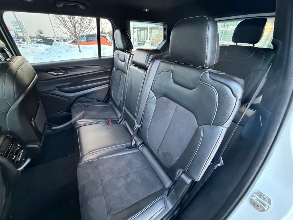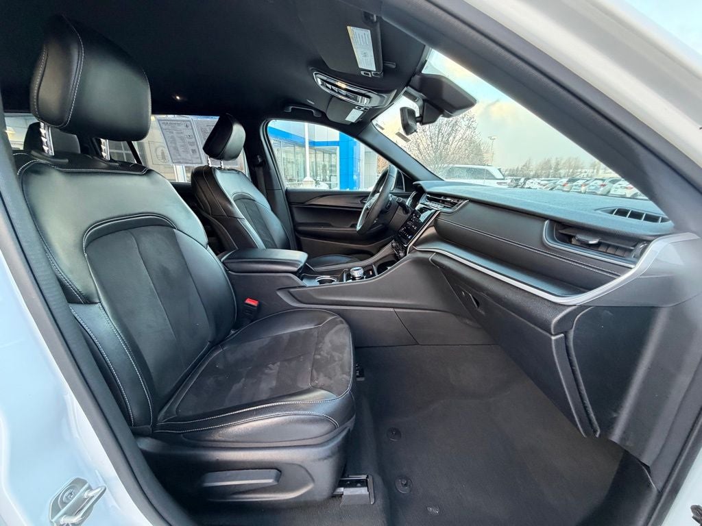 Grand Cherokee L Altitude, 4D Sport Utility, 3.6L V6 24V VVT, 8-Speed Automatic, 4WD, Bright White Clearcoat, Global Black Artificial Leather, 115V Auxiliary Power Outlet, 180 Amp Alternator, 3rd Row Charge-Only USB Ports, 7 & 4 Pin Wiring Harness, Altitude Appearance Package, Automatic Headlamp Leveling System, Black Headliner, Capri Leatherette/Suede Seats, Class IV Receiver Hitch, Delete Laredo Badge, Dual Exhaust Tips, Gloss Black Exterior Accents, Heated Front Seats, Heated Steering Wheel, Heavy-Duty Engine Cooling, Power Liftgate, Quick Order Package 23B Altitude, Rain Sensitive Windshield Wipers, Rear Load Leveling Suspension, Remote Start System, Selectable Tire Fill Alert, Trailer Hitch Zoom, Trailer Tow Package, Wheels: 18 x 8.0 Fully Painted Aluminum 1, Wireless Charging Pad, 2nd Row 60/40 Bench w/Manual Tip/Slide, 2nd Row Seat Center Armrest/Cupholders, 3 Rear Seat Head Restraints, 3.45 Rear Axle Ratio, 3rd row seats: split-bench, 4-Wheel Disc Brakes, 6 Speakers, 7-Passenger Seating, ABS brakes, Air Conditioning, Alloy wheels, Anti-whiplash front head restraints, Automatic temperature control, Brake assist, Bumpers: body-color, Center Rear 3-Point Seat Belt, Cloth Seats, Compass, Delay-off headlights, Driver door bin, Driver vanity mirror, Dual front impact airbags, Dual front side impact airbags, Electronic Stability Control, Emergency communication system, Four wheel independent suspension, Front anti-roll bar, Front Bucket Seats, Front Center Armrest w/Storage, Front dual zone A/C, Front reading lights, Fully automatic headlights, Heated door mirrors, Illuminated entry, Knee airbag, Low tire pressure warning, Manual Fold Seatbacks, Normal Duty Suspension, Occupant sensing airbag, Outside temperature display, Overhead airbag, Overhead console, Panic alarm, ParkView Rear Back-Up Camera, Passenger door bin, Passenger vanity mirror, Power door mirrors, Power driver seat, Power steering, Power windows, Radio data system, Radio: Uconnect 5 w/8.4 Display, Rear air conditioning, Rear anti-roll bar, Rear reading lights, Rear window defroster, Rear window wiper, Reclining 3rd row seat, Remote keyless entry, Security system, Speed control, Speed-Sensitive Wipers, Split folding rear seat, Spoiler, Steering wheel mounted audio controls, Tachometer, Telescoping steering wheel, Tilt steering wheel, Traction control, Trip computer, Variably intermittent wipers, Voltmeter, Wheels: 18 x 8.0 Fully Painted Aluminum, Grand Cherokee L Altitude, 4D Sport Utility, 3.6L V6 24V VVT, 8-Speed Automatic, 4WD, Bright White Clearcoat, Global Black Artificial Leather, 115V Auxiliary Power Outlet, 180 Amp Alternator, 3rd Row Charge-Only USB Ports, 7 & 4 Pin Wiring Harness, Altitude Appearance Package, Automatic Headlamp Leveling System, Black Headliner, Capri Leatherette/Suede Seats, Class IV Receiver Hitch, Delete Laredo Badge, Dual Exhaust Tips, Gloss Black Exterior Accents, Heated Front Seats, Heated Steering Wheel, Heavy-Duty Engine Cooling, Power Liftgate, Quick Order Package 23B Altitude, Rain Sensitive Windshield Wipers, Rear Load Leveling Suspension, Remote Start System, Selectable Tire Fill Alert, Trailer Hitch Zoom, Trailer Tow Package, Wheels: 18 x 8.0 Fully Painted Aluminum 1, Wireless Charging Pad.